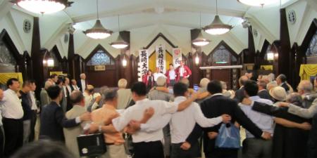 懇親会では、67回生の紹介・福引会が行われ、最後に恒例の校歌斉唱・万歳三唱にて盛大に終了しました。