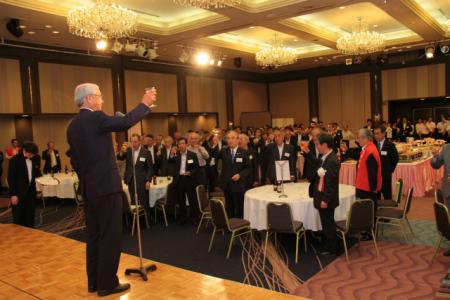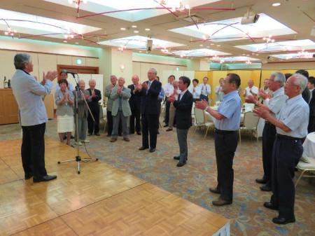 宮脇前会長、田中新会長も来賓として出席し挨拶がありました。総会終了後懇親会に移り、和やかな雰囲気で旧交を温め合い、最後は肩を組んでの校歌斉唱で散会となりました。