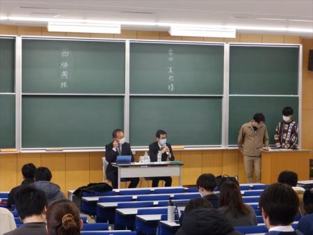 学生からの多くの質問事項に対して、講師からは、それぞれの実体験に基づいた説得力のある話が幅広くなされていました。学生からは、今回学んだ事を今後の就職活動や自分たちの夢をかなえるために活かしていきたい、社会で活躍できるような人材になれるように、これから精進していきたい等の感謝の言葉が述べられていました。