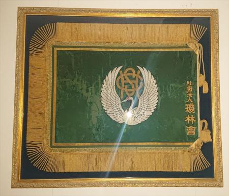 10月26日に開催された令和元年理事会において、瓊林会旗の取り扱いにつき「表面の破れ等の修復を行い額縁に入れて展示する」ことが決議されましたが、今般、これらの作業が行われ額縁の展示が完了しましたのでご報告いたします。