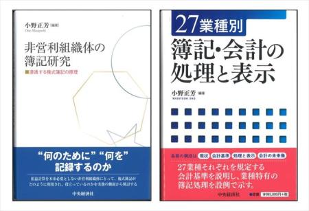 小野正芳氏は、現在、日本大学商学部の教授(博士・経済学)としてご活躍中であり、この2月に編著者として上梓された「非営利組織体の簿記研究 浸透する複式簿記の原理」と「27業種別 簿記・会計の処理と表示」の2冊を事務局にご寄贈いただきました。