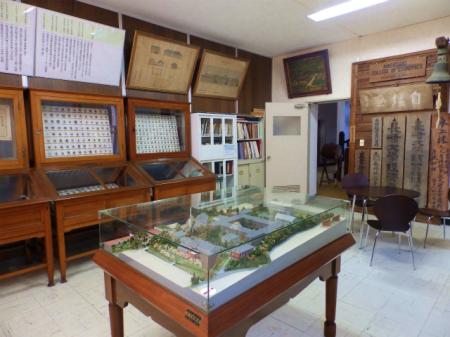 母校の歩みをパネル展示や骨董品の陳列等で説明しています。