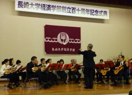 経済学部マンドリンクラブOBを中心に構成された「長崎マンドリンクラブOB&OG会」21名によるマンドリン演奏がありました。
