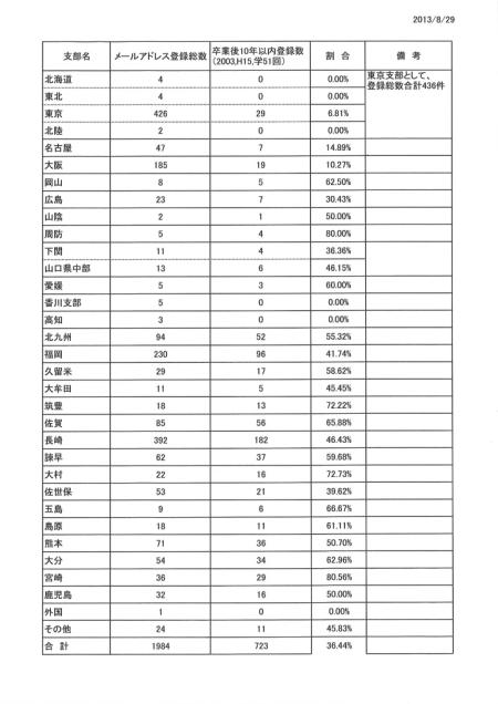 今回、平成25年度本部年会費(卒回別)の9月末時点の納入
