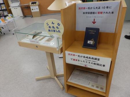 講演要旨を収録した当時の新聞記事(写)や渋沢栄一氏から寄贈された洋書などを展示していますので、興味のある方は、是非、足をお運びください。