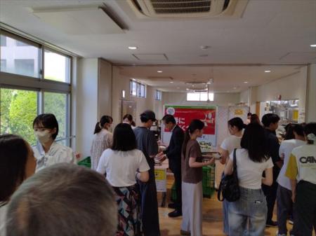 瓊林会による学生支援活動の一つである「瓊林会デー」の学生への認知度はかなり高まっており、今年度4回目となる7/25(木)「瓊林会デー」に用意した230個の弁当は、約20分で配布完了となりました。配布場所の生協食堂及びそこに至るまでの通路には長い列ができる大盛況となり、学生は笑顔で弁当を受け取っていました。